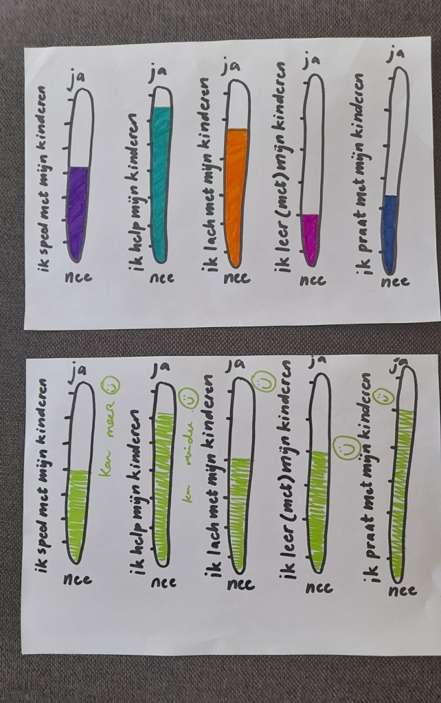 Na een gesprek maakten we de maat op. Ik kwam erachter dat ik mijn kinderen minder wil helpen. Want: hebben mijn kinderen wel om hulp gevraagd als ik denk dat ik ze beter maar te hulp kan schieten? Oef… Ja mensen, pedagoog of niet, iedereen komt tot inzichten als je elkaar en jezelf vragen durft te stellen.